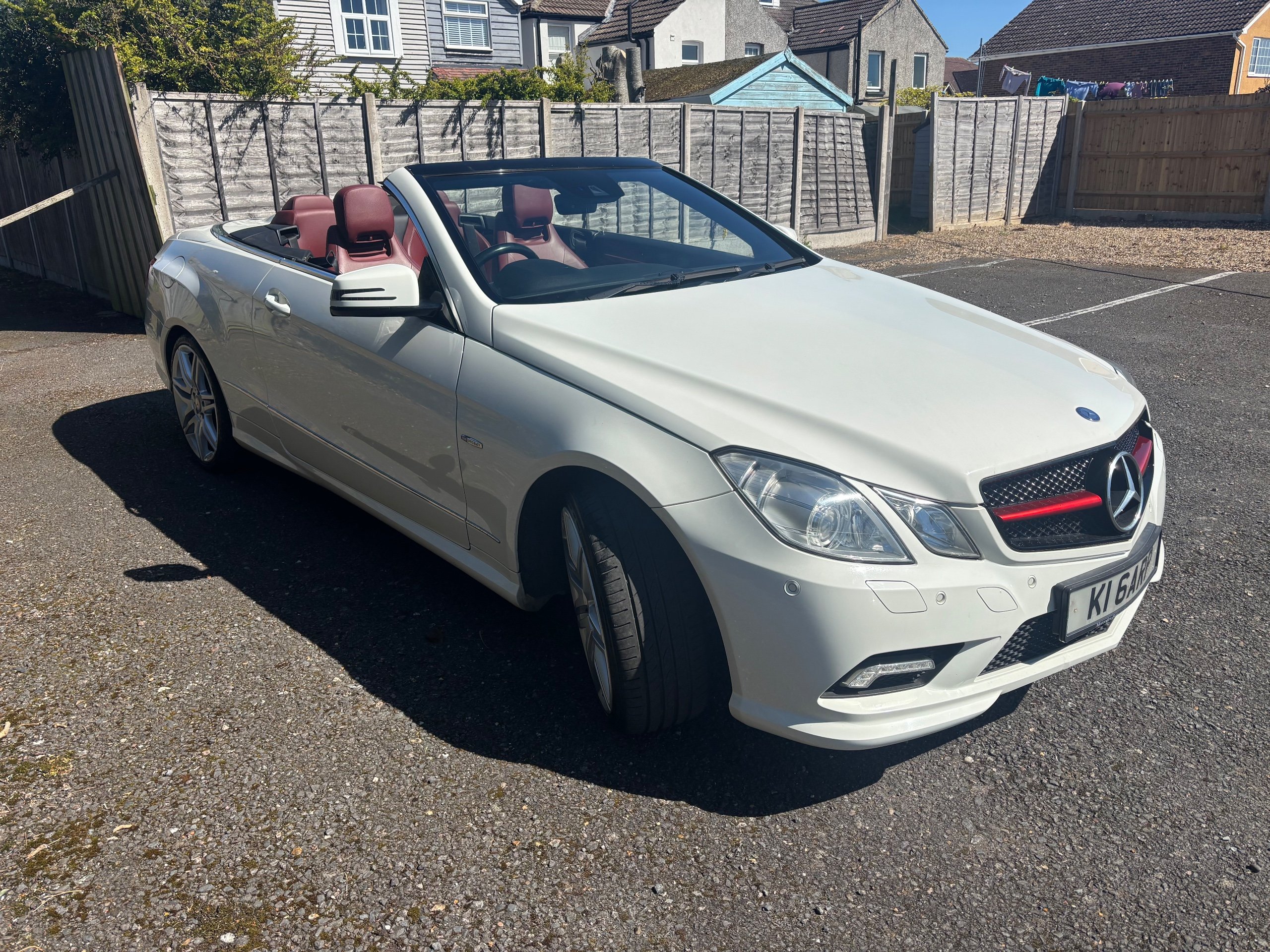 MERCEDES-BENZ E350 3.5 CGI B/E SPORT CONVERTIBLE TIP AUTO 3.5 PETROL SAT NAV 93,969 MILES 5 MERCEDES SERVICES NEW CHAIN AND HAVE BILLS AND RECEIPTS MOT 31/05/2026 RED LEATHER AIR SCARF ELECTRIC MEMORY HEATED SEATS PLUS MASSAGE 19" ALLOY SPORT WHEELS THIS VEHICLE COMES WITH AMAZING SPECIFICATION WHICH INCLUDES THE FOLLOWING; (1) ELECTRIC ROOF AND (2) BLUETOOTH CONNECTIVITY FOR PHONE AND MEDIA (3) SAT NAV DAB-FM/AM RADIO (4) AIR CONDITIONING (5) ECO MODE (6)RAIN SENSORS (7) HEADLIGHTS SENSORS (8) USB AND AUX CONNECTION FOR EXTERNAL MUSIC DEVICES (9) ELECTRIC PARKING BRAKE (10) PARKING SENSORS FRONT AND REAR PLUS REVERSING CAMERA (12) TYRE PRESSURE WARNING SYSTEM. THIS VEHICLE IS ULEZ . PLEASE GO TO THE WEB SITE FOR MORE PHOTO ( PLEASE NOTE ALL CARS CAN BE VIEWED IN ONE PLACE VIEWINGS ARE BY APPOINTMENT ONLY